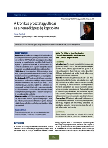 Kopa, Zsolt (2025) A krónikus prosztatagyulladás és a nemzőképesség kapcsolata. Magyar Urológia, 2025 (4). pp. 169-171. ISSN 0864-8921