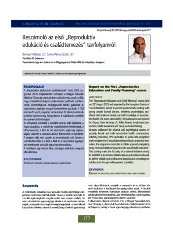 Benyó, Mátyás and Sziva, Réka Eszter (2025) Beszámoló az első "Reproduktív edukáció és családtervezés" tanfolyamról. Magyar Urológia, 2025 (4). pp. 177-179. ISSN 0864-8921