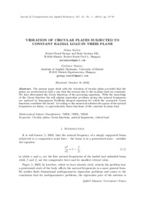| Uncontrolled Keywords: | circular plates, Green functions, natural frequencies, critical load |