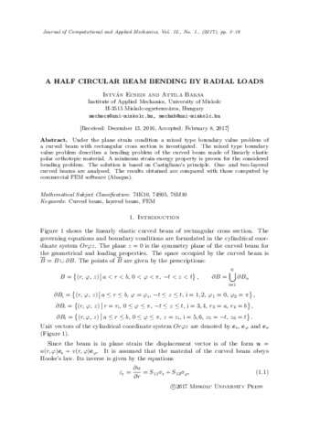Ecsedi, István and Baksa, Attila (2017) A half circular beam bending by radial loads. JOURNAL OF COMPUTATIONAL AND APPLIED MECHANICS, 12 (1). pp. 3-18. ISSN 1586-2070