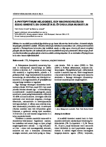 Tóth, Endre and Bakonyi, József (2024) A Phytopythium Helicoides, egy Magyarországon eddig ismeretlen Oomicéta előfordulása muskátlin = First report of the Oomycete Phytopythium Helicoides from Pelargonium in Hungary. NÖVÉNYVÉDELEM, 85 (3). pp. 103-108. ISSN 0133-0829