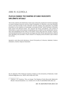 Kleimola, Ann M. (2025) Plus ça change: The Shaping of Early Muscovite Diplomatic Rituals. RUSSIANSTUDIES.HU, 7 (2). pp. 201-211. ISSN 2677-1640