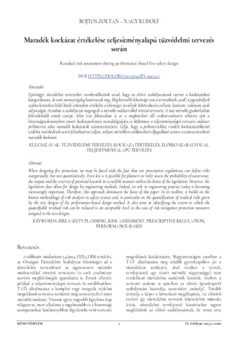 Bojtos, Zoltán and Nagy, Rudolf (2025) Maradék kockázat értékelése teljesítményalapú tűzvédelmi tervezés során. RENDVÉDELEM TUDOMÁNYOS FOLYÓIRAT (ON-LINE), 14 (2). pp. 2-12. ISSN 2560-2349