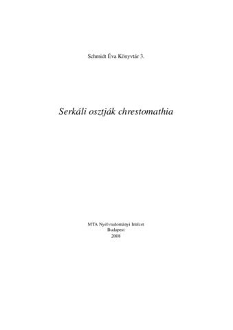 Fejes, László, ed. (2008) Serkáli osztják chrestomathia. Schmidt Éva Könyvtár, 3 . MTA Nyelvtudományi Intézet, Budapest. ISBN 9789639074460