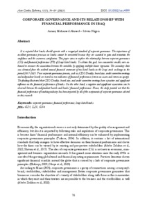 It is expected that banks should operate with a recognized standard of corporate governance. The importance of excellent governance processes in banks cannot be overstated because they are essential to gain and maintain the confidence and the customers satisfaction. This paper aims to explore the relationship between corporate governance (CG) and financial performance (FP) of Iraqi listed banks. To obtain this goal, two econometric models were enhanced to measure the association between the variables by applying multiple linear regression. The secondary data was obtained from the audited annual financial statement of ten listed banks in the Iraqi stock exchange in the period 2017-2021. Four corporate governance proxies, such as (CEO Duality, board size, audit committee meetings and independent board) are tested on two indicators of financial performance (return on assets and return on equity). The finding illustrated that CEO Duality, board size, and audit committee meetings have a positive and significant influence on the financial performance of banks. On the other hand, a negative and significant association can be observed between the independent boards and banks’ financial performance. Hence, the study pointed out that the financial performance of banking industry has been impacted by all of the components of corporate governance selected in this research.