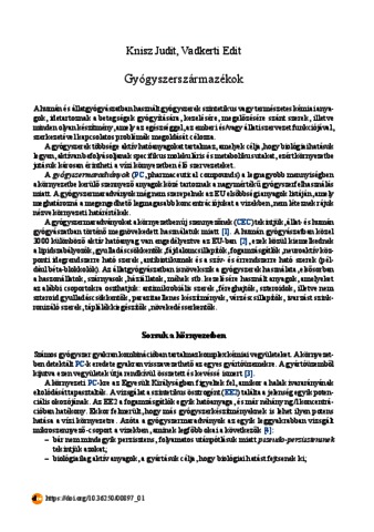 Knisz, Judit and Vadkerti, Edit (2021) Gyógyszerszármazékok. In: A szerves mikroszennyezők csoportjai. Ludovika Egyetemi Kiadó, Budapest, pp. 13-17. ISBN 978-963-531-393-8, 978-963-531-394-5, 978-963-531-395-2