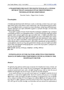 A teljesítményre ható tényezők vizsgálata a fizikai munkát végző alkalmazottak tekintetében a vendéglátóipari szektorban