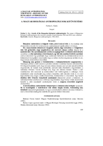Farkas, L. Gyula (2025) A magyar biológiai antropológusok kitüntetései. ANTHROPOLOGIAI KÖZLEMÉNYEK, 66. pp. 109-111. ISSN 0003-5440 (nyomtatott); 2560-0753 (online)