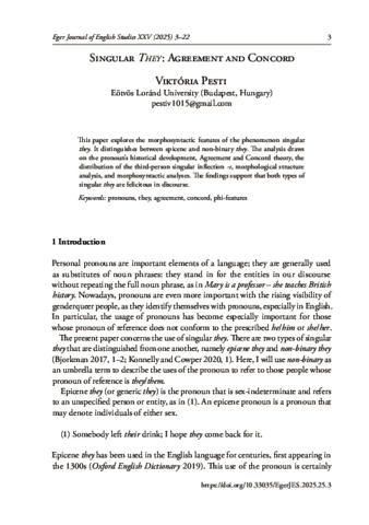 Pesti, Viktória (2025) Singular They: Agreement and Concord. EGER JOURNAL OF ENGLISH STUDIES (25). pp. 3-22. ISSN 1786-5638 (print); 2060-9159 (online)