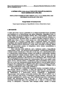 Faragó, Sándor and Gosztonyi, Lívia (2013) A szürke gém (Ardea cinerea) vonuló és telelő állománya Magyarországon (1996-2012) = Population number of grey heron (Ardea cinerea) migrating and wintering in Hungary (1996-2012). MAGYAR VÍZIVAD KÖZLEMÉNYEK, 2013 (23). pp. 275-310. ISSN 1416-1389