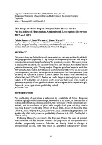 Sipiczki, Zoltán and Wickert, Irén and Varga, József (2025) The Impact of the Input-Output Price Ratio on the Profitability of Hungarian Agricultural Enterprises Between 2007 and 2021. REGIONAL AND BUSINESS STUDIES, 17 (2). pp. 17-30. ISSN 2061-2311