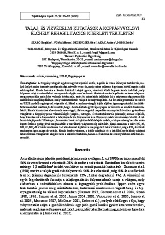 A Koppány-völgyét egykor nagy kiterjedésű erdők, legelők és vizes élőhelyek tarkították, melyek helyét mára intenzív mezőgazdasági művelés vette át, mely szinte teljesen figyelmen kívül hagyja a táji adottságokat. Ennek hatására a löszön kialakult talajok gyors, vízerózió általi degradációnak indultak, mely folyamat talaj- és vízvédelmi szempontok alapján sem kedvező. Munkánk során legelőször az éves talajveszteség potenciális mértékére voltunk kíváncsiak, ezért öt mintalejtőt jelöltünk ki a talajveszteség potenciális mértékének megállapításához, mely mintaterületek talajait is megvizsgáltuk. Az éves talajpusztulás becslését az USLE modell segítségével végeztük el. Mivel a random vizsgált lejtők aljában igen nagymértékű hordalék- felhalmozódást mértünk, feltételeztük, hogy a hordalékkal együtt tápanyagok is távoztak az erodált domboldalakról. Ennek kimutatására havi rendszerességgel, illetve nagyobb csapadékeseményeket követően gyakrabban vizsgáltuk a Koppány-patak vízminőségét (oxigén-, nitrogén- és foszforháztartás jellemzői) annak céljából, hogy kimutassuk a kapcsolatot a talajdegradációs folyamatok és a Koppány-patak vízminősége között. A jellemző talajtípusok földeskopár, humuszkarbonát és lejtőhordalék talajok voltak, a talajveszteség becslés során kapott értékek pedig jóval meghaladták a tolerálható talajveszteség mértékét. Ezzel szemben a mért NO3-N, NO2-N, NH4-N értékek mindössze 1–2 alkalommal lépték át a megengedett határértékeket, míg a PO4-P értékek rendszerint igen magasak voltak. Ennek forrása viszont, a lejtők talajának és a lejtőlábi hordalékok talajtani laboratóriumi vizsgálatok alapján nem a szántóterületeken, hanem a Balatonlellei szennyvízbevezetésben keresendő. | In the Koppány Creek Valley the land use types do not reflect natural and geomorphologic factors and thus causing negative effects such as soil water erosion and water pollution. To prove the negative effects of land use change, we chose soil erosion as indicator. We used the USLE model to calculate the amount of soil loss based on five selected sample slopes on plough lands. The results show that the yearly soil loss values are higher than the tolerable soil loss. We assumed that intense rainfall events can cause severe nutrient loss from plough lands and that can be detected in the water samples from the creek. Therefore between Törökkoppány and Gerézdpuszta we performed water quality examination. We regularly took samples at three points. The monthly measurements show that PO4-P values are very high and the phosphorus load is continuous and it is multiple of the desirable limit, which applies markedly during low water periods. The source of the phosphorus is not the arable land (according to the soil sample chemical analyses), but the wastewater management of Balatonlelle. Planned soil and water conservation interventions based on the measurements.
