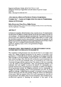 In the life of each municipality, settlement leadership is always a key factor of success. The study demonstrates that stable loyalty and confidence in municipal leadership is felt not only toward the figure of the leader but also his entourage, i.e., the administrative staff and the representative body. The primary data collection in the framework of the research conducted by the Institute for Regional Studies enabled us to examine a specific layer of local elites in peripheral areas from various perspectives. The study reviews the composition, role, and functions of the representative body during the successive local government election cycles in Baranya County in Hungary, with a view to examining the subjective determinants of settlement success.