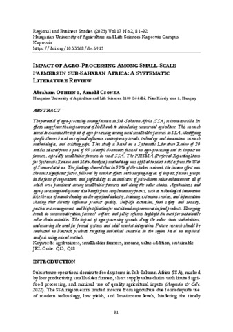 Othieno, Abraham and Csonka, Arnold (2025) Impact of Agro-Processing Among Small-Scale Farmers in Sub-Saharan Africa. REGIONAL AND BUSINESS STUDIES, 17 (2). pp. 81-92. ISSN 2061-2311