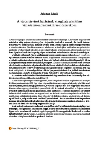Mrekva, László (2021) A városi árvizek hatásának vizsgálata a kritikus víziközmű-infrastruktúrarendszerekben. In: II. Országos Települési Csapadékvíz-gazdálkodási Konferencia 2019. Ludovika Egyetemi Kiadó, Budapest, pp. 255-269. ISBN 9789635314690; 9789635314706