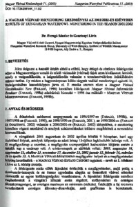 Faragó, Sándor and Gosztonyi, Lívia (2003) A Magyar Vízivad Monitoring eredményei a 2001/2002-es idényben = Results of Hungarian waterfowl monitoring in the season 2001/2002. MAGYAR VÍZIVAD KÖZLEMÉNYEK, 2003 (11). pp. 51-252. ISSN 1416-1389
