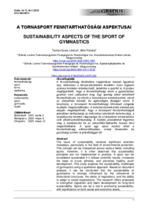 A fenntarthatóság kérdésköre napjainkban kiemelt figyelmet kap, különösen a környezetvédelem területén. Ezen fogalom számos területen értelmezhető, beleértve a sportot is. Azonban megfigyelhető, hogy a fenntarthatósági elvek a gyakorlatban gyakran nem valósulnak meg. Egy sportág akkor tekinthető fenntarthatónak, ha követi a tudományos eredményeket, növeli az utánpótlás bázisát, és egészséges ifjúságot nevel. A tanulmány a tornasport fenntarthatósági kihívásait vizsgálja kvalitatív megközelítésben. A dokumentumelemzés eredményei alapján megállapítható, hogy a tornasport fenntarthatóságát jelentősen befolyásolja az intézményi struktúrák koherenciája, a szabályozási keretek világossága és a társadalmi elvárásokhoz való alkalmazkodóképesség. A kutatás javaslatokat fogalmaz meg a szabályozás és az utánpótlás-fejlesztés hosszú távú megerősítésére. A sport egy olyan eszköz lehet a fenntarthatóság előmozdításában, amely társadalmi és gazdasági szinten is jelentőséggel bír. The issue of sustainability receives significant attention nowadays, particularly in the field of environmental protection. This concept can be interpreted across various fields, including sports. However, it is often observed that sustainability principles are not implemented in practice. A sport can be considered sustainable if it follows scientific results, increases the base of future athletes, and promotes healthy youth development. This study explores the sustainability challenges of gymnastics using a qualitative approach. Based on document analysis, it can be concluded that the sustainability of gymnastics is strongly influenced by the coherence of institutional structures, the clarity of regulations, and the ability to adapt to social expectations. The research offers proposals to strengthen regulation and talent development for long-term sustainability. Sports can be a tool in promoting sustainability, with significance on both social and economic levels.