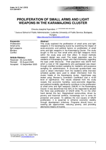 Omuria, Josephat Nyandoro (2025) Proliferation of small arms and light weapons in the Karamajong cluster. GRADUS, 12 (2). ISSN 2064-8014