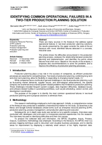 Bernadett, Bécsi and Viharos, Zsolt János and Nagy, Zoltán (2025) Identifying common operational failures in a two-tier production planning solution. GRADUS, 12 (2). ISSN 2064-8014
