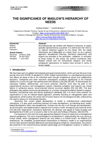 Strelicz, Andrea and Berényi, László (2025) The significance of Maslow’s hierarchy of needs. GRADUS, 12 (2). ISSN 2064-8014