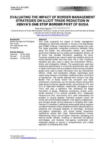 Peter, Mauti Igesha (2025) Evaluating the impact of border management strategies on illicit trade reduction in Kenya’s Ooe stop border post of Busia. GRADUS, 12 (2). ISSN 2064-8014