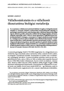 Szerb, László (2025) Vállalkozáskutatás és a vállalkozói ökoszisztéma biológiai metaforája. KÖZGAZDASÁGI SZEMLE, 72 (12). pp. 1157-1178. ISSN 0023-4346 (print); 1588-113X (online)
