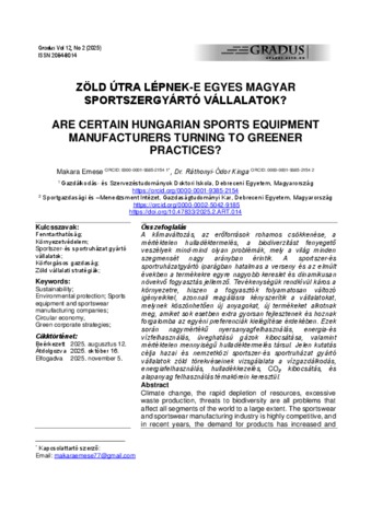 Makara, Emese and Ráthonyi-Ódor, Kinga (2025) Zöld útra lépnek-e egyes magyar sportszergyártó vállalatok? = Are certain Hungarian sports equipment manufacturers turning to greener practices? GRADUS, 12 (2). ISSN 2064-8014