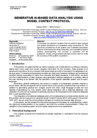 Bolla, Kálmán Milán and Kovács, Márk (2025) Generative AI-based data analysis using Model Context Protocol. GRADUS, 12 (2). ISSN 2064-8014
