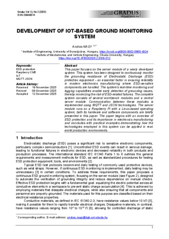 Andras, Nagy (2025) Development of IoT-based ground monitoring system. GRADUS, 12 (2). ISSN 2064-8014