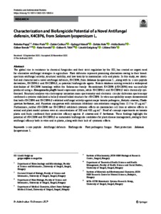 Papp, Rebeka and Poór, Péter and Czékus, Zalán and Váradi, Györgyi and Kele, Zoltán and Borics, Attila and Bende, Gábor and Horváti, Kata and Tóth, Gábor and Galgóczi, László Norbert and Tóth, Liliána (2025) Characterization and Biofungicide Potential of a Novel Antifungal defensin, K4CBP6, from Solanum lycopersicum L. PROBIOTICS AND ANTIMICROBIAL PROTEINS. ISSN 1867-1306