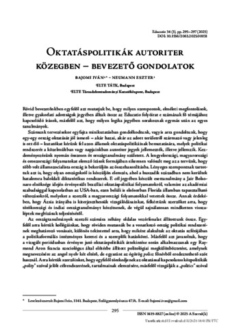 Bajomi, Iván and Neumann, Eszter (2026) Oktatáspolitikák autoriter közegben – Bevezető gondolatok. EDUCATIO, 34 (3). pp. 295-297. ISSN 1216-3384