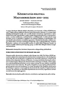 Juhász, Ágnes and Nahalka, István (2026) Közoktatás-politika Magyarországon 2010–2025 = Public Education Policy in Hungary, 2010–2025. EDUCATIO, 34 (3). pp. 322-336. ISSN 1216-3384