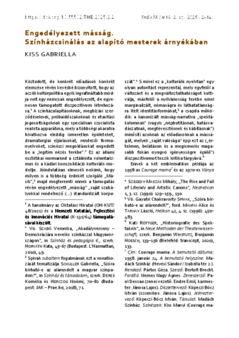 Kiss, Gabriella (2025) Engedélyezett másság : Színházcsinálás az alapító mesterek árnyékában = Authorised Otherness. Theatre-Making in the Shadow of the Founding Masters. THEATRON: SZÍNHÁZTUDOMÁNYI PERIODIKA, 19 (2). pp. 2-14. ISSN 1418-9941