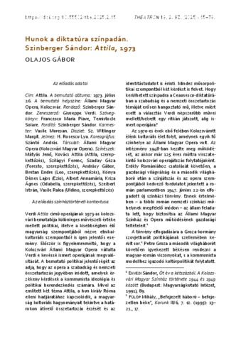 Olajos, Gábor (2025) Hunok a diktatúra színpadán : Szinberger Sándor: Attila, 1973 = Huns on the Stage of Dictatorship. Sándor Szinberger: Attila, 1973. THEATRON: SZÍNHÁZTUDOMÁNYI PERIODIKA, 19 (2). pp. 65-79. ISSN 1418-9941