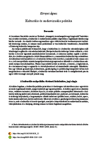 Kerényiné Környei, Ágnes (2022) Kulturális és audiovizuális politika. In: Az Európai Unió szakpolitikai rendszere. Ludovika Egyetemi Kiadó, Budapest, pp. 409-424. ISBN 9789635317479; 9789635317486; 9789635317493