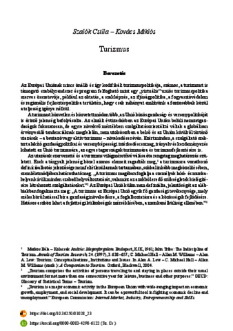 Szalók, Csilla and Kovács, Miklós (2022) Turizmus. In: Az Európai Unió szakpolitikai rendszere. Ludovika Egyetemi Kiadó, Budapest, pp. 425-447. ISBN 9789635317479; 9789635317486; 9789635317493
