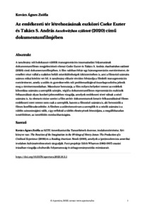 Kovács, Ágnes Zsófia (2023) Az emlékezeti tér létrehozásának eszközei Cseke Eszter és Takács S. András Auschwitzban született (2020) című dokumentumfilmjében. APERTÚRA, 18 (3). pp. 1-20. ISSN 1787-7245