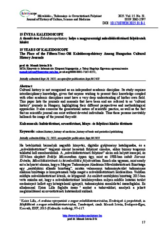 Monok, István (2025) A tizenöt éves Kaleidoscopehistory helye a magyarországi művelődéstörténeti folyóiratok között. KALEIDOSCOPE: MŰVELŐDÉS- TUDOMÁNY- ÉS ORVOSTÖRTÉNETI FOLYÓIRAT, 15 (31). pp. 17-21. ISSN 2062-2597