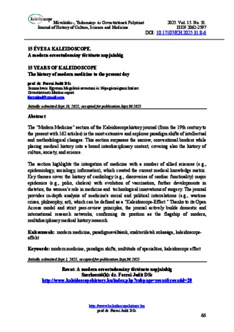 Forrai, Judit (2025) A modern orvostudomány története napjainkig. KALEIDOSCOPE: MŰVELŐDÉS- TUDOMÁNY- ÉS ORVOSTÖRTÉNETI FOLYÓIRAT, 15 (31). pp. 67-84. ISSN 2062-2597