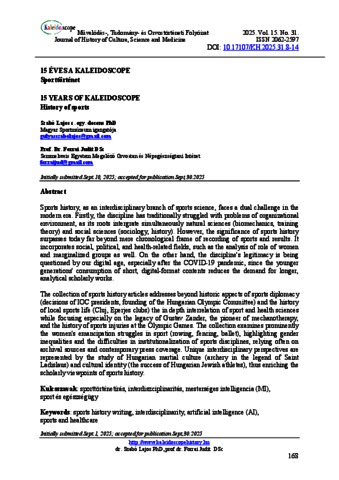 | Uncontrolled Keywords: | sporttörténetírás, interdiszciplinaritás, mesterséges intelligencia (MI), sport és egészségügy |