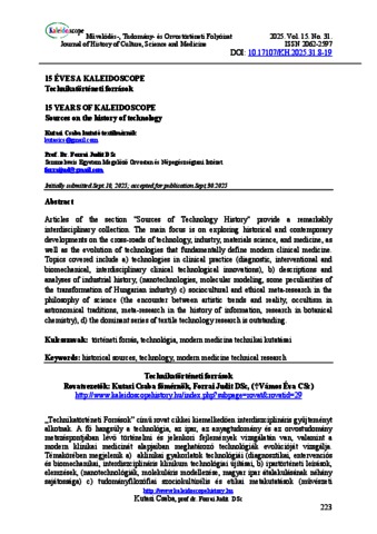 Kutasi, Csaba and Forrai, Judit (2025) Technikatörténeti források. KALEIDOSCOPE: MŰVELŐDÉS- TUDOMÁNY- ÉS ORVOSTÖRTÉNETI FOLYÓIRAT, 15 (31). pp. 223-233. ISSN 2062-2597