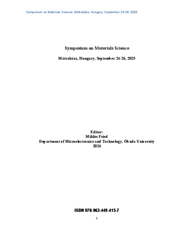 Fried, Miklós, ed. (2026) Symposium on Materials Science - Mátraháza, Hungary, September 24-26, 2025. Óbudai Egyetem, Budapest. ISBN 9789634494157