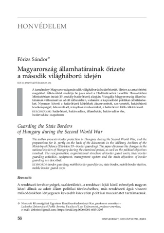 Fórizs, Sándor (2025) Magyarország államhatárainak őrizete a második világháború idején. HADTUDOMÁNY: A MAGYAR HADTUDOMÁNYI TÁRSASÁG FOLYÓIRATA, 35 (3). pp. 56-70. ISSN 1215-4121