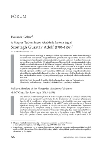 Hausner, Gábor (2025) A Magyar Tudományos Akadémia katona tagjai – Szontagh Gusztáv Adolf (1793–1858). HADTUDOMÁNY: A MAGYAR HADTUDOMÁNYI TÁRSASÁG FOLYÓIRATA, 35 (3). pp. 120-142. ISSN 1215-4121