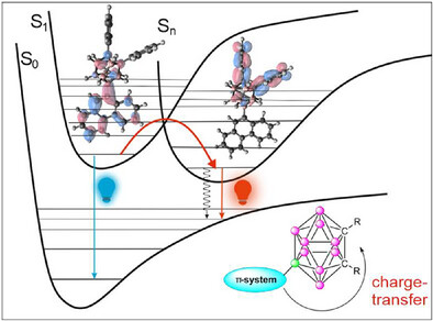 o ‐Carborane‐based fluorophores are widely recognized for their aggregation‐induced and crystallization‐induced emission (AIE and CIE) properties, making them valuable building blocks for materials used in fluorescence applications such as bioimaging or optoelectronics. Until now, observing AIE/CIE required the fluorophore to be attached via the carbon atom of the carborane, inherently limiting further functionalization possibilities. Herein, we report for the first time that boron‐substituted carboranes (substituent is at position 9) exhibit AIE/CIE activity, which originates from photoexcitation‐induced electron‐transfer from the substituents linked to the carborane cage via its boron vertices. Furthermore, the solid state emission can be tailored by the proper selection of the substituents. This finding not only significantly broadens the scope of AIE‐active compounds but also offers new design strategies for the development of luminescent carborane‐based materials.