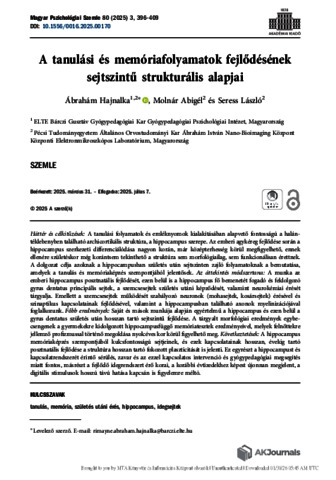 Ábrahám, Hajnalka and Molnár, Abigél and Seress, László (2025) A tanulási és memóriafolyamatok fejlődésének sejtszintű strukturális alapjai. MAGYAR PSZICHOLÓGIAI SZEMLE, 80 (3). pp. 396-409. ISSN 0025-0279