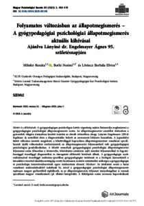 Mlinkó, Renáta and Borhi, Noémi and Lőrincz, Borbála Elvira (2025) Folyamatos változásban az állapotmegismerés : A gyógypedagógiai pszichológiai állapotmegismerés aktuális kihívásai : Ajánlva Lányiné dr. Engelmayer Ágnes 95. születésnapjára = Assessment in continuous change : Current challenges of psychology of special needs assessment : Dedicated to the 95th birthday of Lányiné dr. Engelmayer Ágnes. MAGYAR PSZICHOLÓGIAI SZEMLE, 80 (3). pp. 460-478. ISSN 0025-0279