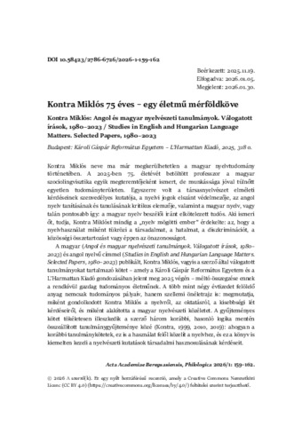 Kontra Miklós: Angol és magyar nyelvészeti tanulmányok. Válogatott írások, 1980–2023 / Studies in English and Hungarian Language Matters. Selected Papers, 1980–2023. Budapest: Károli Gáspár Református Egyetem – L’Harmattan Kiadó, 2025, 318 o.
