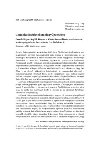 Csordás, László (2026) Gondolatkísérletek naplógyűjteménye. ACTA ACADEMIAE BEREGSASIENSIS, PHILOLOGICA, 5 (1). pp. 171-173. ISSN 27866718