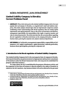 This article is focused on the Limited Liability Company (LLC), the most popular form of company in Slovakia, as a legal form for small and medium enterprises. The article analyses selected topics that are important for comparison and for establishing a better understanding of the Slovak regulation; these are mainly capital requirements and capital protection, bans on the return of investment contributions, management responsibility, the responsibility of the single or majority member, and rules on minority protection. The article also describes the current problems regarding the LLC regulation in Slovakia (restrictions on the company formation, transfer of business shares, piercing the corporate veil, de facto statutory body/ director.